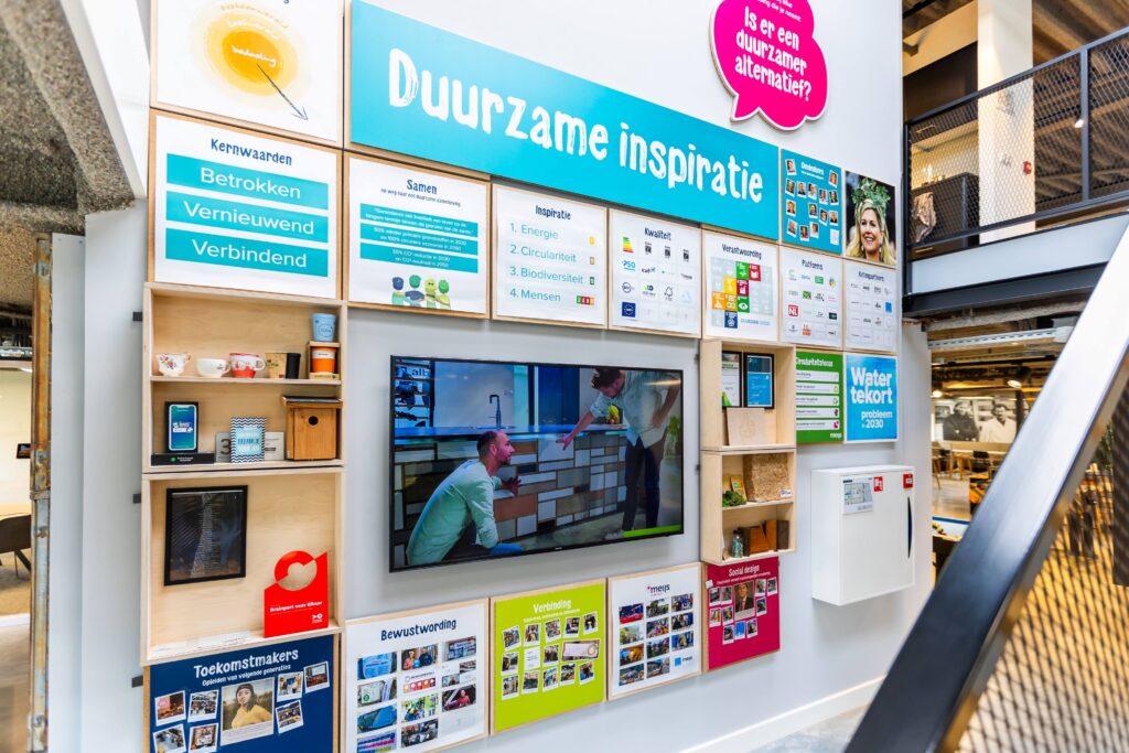 Luc Reusken manager Duurzaamheid bij van der Meijs is met de hele organisatie bezig om duurzamere (product)keuzes te maken voor de werkzaamheden die zij verrichten voor woningbouwcorporaties. Ze hebben vele aansprekende moodboards gemaakt waar hun opdrachtgevers staan en waar ze mee bezig zijn en waar van de Meijs zelf de uitdagingen ziet en werkt aan het verbeterpotentieel.