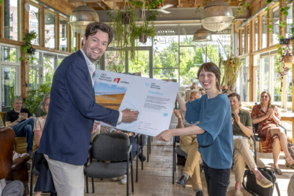 Voordat echter het inhoudelijke programma daarover begint, heeft Monster eerst nog een feestelijk momentje in petto. “Inmiddels omarmen meer dan honderd partijen Het Nieuwe Normaal. En met de ondertekening van het manifest komt daar vandaag weer een partij bij.” Naast haar staat Julius Terpstra de Leidse wethouder van wonen, bouwen en welzijn. Met het onderwerp biobased en circulariteit heeft Leiden volgens hem wel wat. “We hebben immers de Leidse Ladder circulair bouwen en dat sluit voor een belangrijk deel aan op Het Nieuwe Normaal. We moeten met de bouwopgave die we hebben gaan voor een zo laag mogelijke milieu impact. Een haalbare ambitie die we nu naar een uitvraag moeten vertalen.” Tegelijkertijd ziet Terpstra wel nog veel partijen die koudwatervrees hebben om met circulariteit en biobased materialen aan de slag te gaan. “Tegen die bouwers en ontwikkelaars zou ik willen zeggen: we hebben in dit deel van de provincie de komende jaren 140.000 woningen te bouwen. Als zij niet meegaan zijn ze straks niet meer aantrekkelijk.” Vervolgens zet Julius Terpstra onder een luid applaus zijn handtekening onder het manifest van Het Nieuwe Normaal.