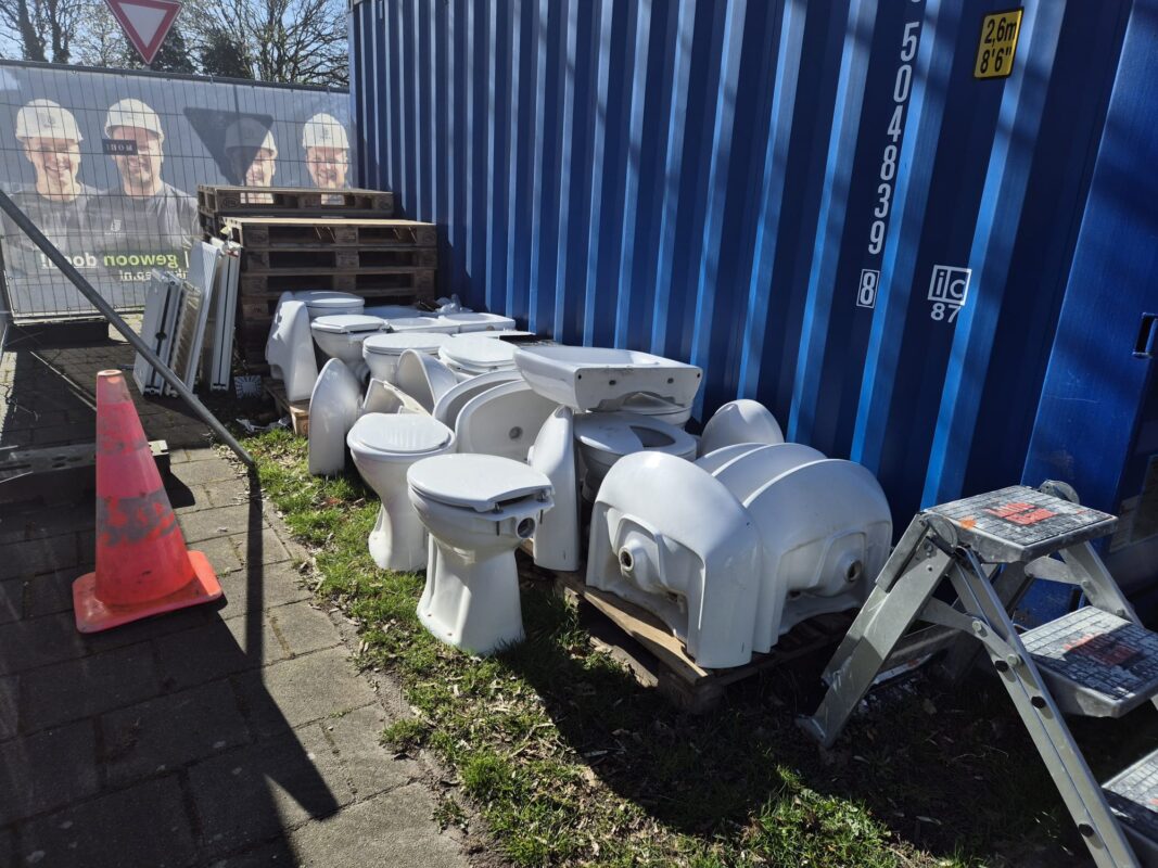 Een rijtje wasbakken of gebruikte toiletpotten, net gedemonteerd bij een renovatieproject. Of circulair gezegd: geoogst. “Je ziet dat afgedankte sanitair regelmatig liggen op bouwplaatsen,” weet Stèphan Lubbertsen van Uwoon. Vaak zijn het materialen die jarenlang dienst hebben gedaan en nu als oud vuil worden afgevoerd. “Dan denk je soms: is dit nou echt nodig?” Als regisseur onderhoud en verbetering kijkt Lubbertsen dagelijks naar bestaand vastgoed en ziet hij circulaire kansen. “Bij onderhoud en verduurzaming kom je vanzelf op dit soort vragen uit. Waarom zouden we iets weggooien als het nog goed is?”