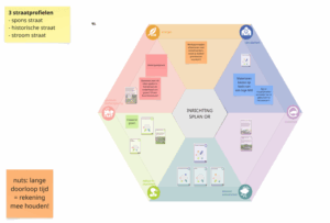 Aan de hand van interventiekaarten – gebaseerd op de thema’s uit het Convenant Toekomstbestendig Bouwen – ontstonden waardevolle gesprekken en creatieve ideeën. De nadruk lag hierbij onder andere op het opnieuw doordenken van straatprofielen: hoe kan een straat bijdragen aan zowel klimaatadaptatie, ontmoeting als duurzame mobiliteit?