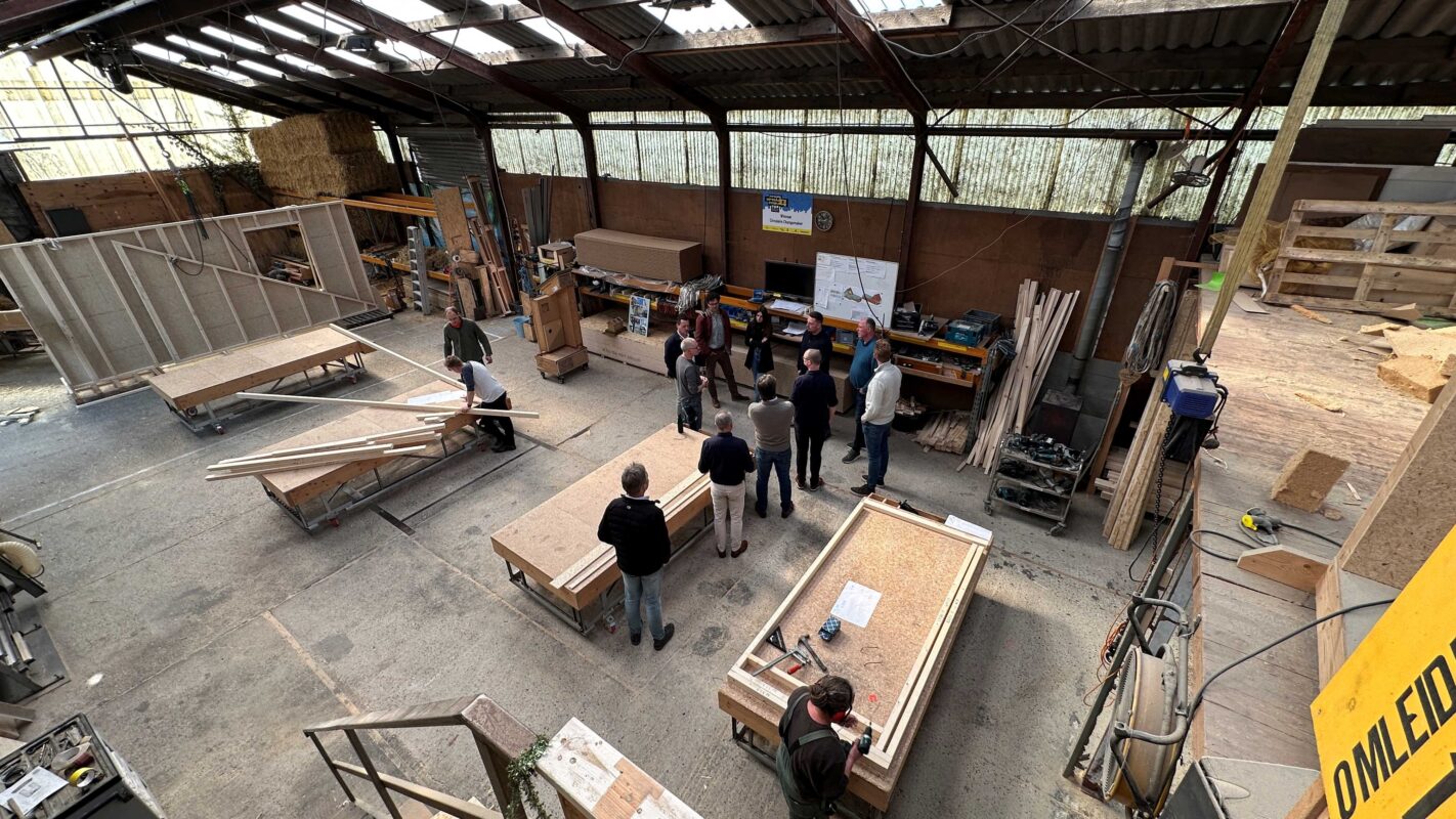 Na de presentatie bij Onderpand bezocht de groep Strobox, waar eigenaar Roelof Vossebeld uitleg gaf over innovatieve biobased bouwmethoden. Strobox, opgericht in 2017, richt zich op het verkorten van de bouwketen en het minimaliseren van de milieubelasting. Door stro en andere biobased materialen toe te passen in bouwmodules, biedt het bedrijf een duurzaam en gezond alternatief voor traditionele bouwmethoden.