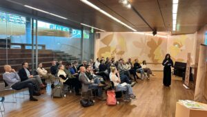 In het tweede deel van de ochtend gingen de deelnemers met elkaar in gesprek over twee hoofdvragen: wat is er nodig om kwaliteit en doelstellingen vast te houden binnen complexe opgaven en welke nieuwe spelregels voor gebiedsontwikkeling helpen daarbij? In de gesprekken werd duidelijk hoe belangrijk een goede onstart is: wanneer toekomstbestendigheid pas halverwege wordt toegevoegd, loopt een project vaak vast. Heldere spelregels aan het begin zorgen voor consistentie. Ook werd benadrukt dat integraliteit nieuwe vormen van samenwerking vraagt, waarbij alle betrokken partijen vanaf het begin samen optrekken.