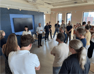 Tijdens de tweede partnerbijeenkomst van Cirkelstad Eindhoven kwamen 26 professionals uit de bouwsector samen bij VB groep/CRA Vastgoed om kennis te delen en samen te ontdekken hoe circulair bouwen en aanbesteden in de praktijk toegepast kunnen worden. Tijdens het programma stonden verschillende praktijkvoorbeelden en perspectieven centraal. Onderwerpen als circulaire KPI’s, hybride bouw, duurzame uitvragen en samenwerking binnen de keten kwamen aan bod.