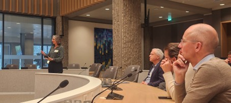 Arthur Friederichs (Haskoning) presenteert de aanpak van de Paris Proof doorrekening van de gebiedsontwikkeling Waterkant in Rotterdam-Zuid. De haalbaarheidsstudie richtte zich op ontwerpkeuzes, hoe de bestuurlijke besluitvorming te ondersteunen is wordt nu nog ontwikkeld.
