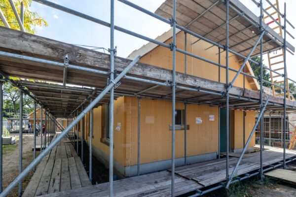 Het project is bijzonder omdat het voor het eerst gebruikmaakt van volledig prefab-geassembleerde strotec-gevels, in combinatie met CLT (cross laminated timber) verdiepingsvloeren en dakkappen geïsoleerd met houtvezel. Deze innovatieve bouwmethode zorgt niet alleen voor een kleinere ecologische voetafdruk, maar ook voor een hoge mate van comfort en energiezuinigheid.