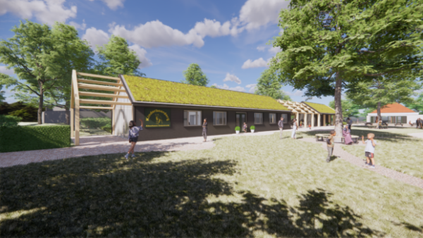 Natuurlijk was deze locatie niet toevallig gekozen door Cirkelstad Zuid-Holland. Op het moment van ontvangst was er nog een grote verbouwing gaande op deze plek. Hierbij is veel gebruik gemaakt van oud materiaal van het afgebroken zwembad dat ernaast lag, zoals het houtwerk en de wanden van de kleedhokjes. Ook is in de nieuwe panden veel materiaal op een losmaakbare manier verwerkt zoals de houten constructie, plafondpanelen en wanden. Het hart van de kinderboerderij is het paviljoen met het rode dak. “Dit heeft een icoonfunctie in Zwijndrecht,” legt Mark Boschman van RoosRos Architecten uit. “Hier zijn ontelbaar veel trouwfoto’s gemaakt. Dat moest dus blijven staan. De rest van het terrein is volledig duurzaam vernieuwd.”
