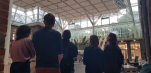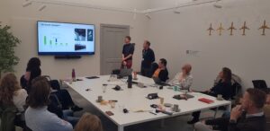 Tijdens de bijeenkomst kreeg Cirkelstad eerst een rondleiding door het prachtige verbouwde pand van de oude faculteit Mijnbouw. Deze is met veel respect voor de monumentale status, aangepast aan de moderne eisen. Daarbij was ook oog voor circulariteit, wat her en der te zien was aan de materiaalkeuze (refurbish, zoals vloerbedekking), de keuze om dingen niet te doen (refuse, zoals de open plafonds bij de zolders) en rechtstreeks hergebruik (re-use, zoals het auditorium). Alle deelnemers waren enthousiast over wat zij daar zagen.