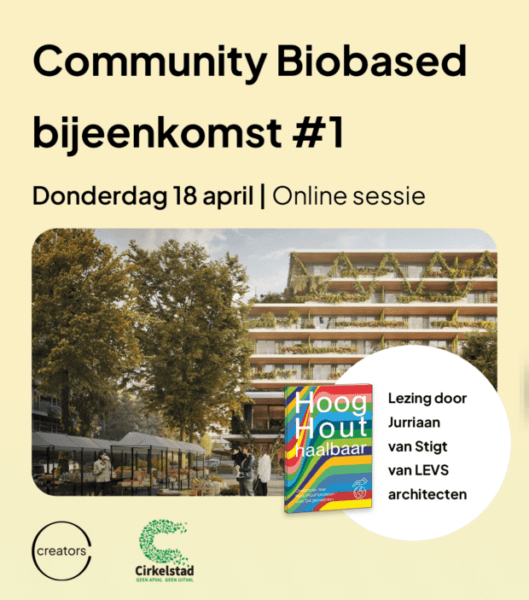 Op donderdag 18 april is er de startbijeenkomst van de Cirkelstad Community Biobased. De eerste bijeenkomst is online, omdat er van over het hele land partijen zijn aangesloten. We trappen de sessie af met een presentatie van Jurriaan van Stigt, de oprichter van LEVS architecten over het onderzoek ‘Hoog Hout haalbaar’, een verslag van een onderzoekstraject door veertien partijen naar Paris Proof tenderen op hoogbouw. Hoofdvraag daarin was: hoe kunnen de G4 gemeenten uitvragen bij hoogbouw om tot een Paris Proof gebouwde omgeving te komen?